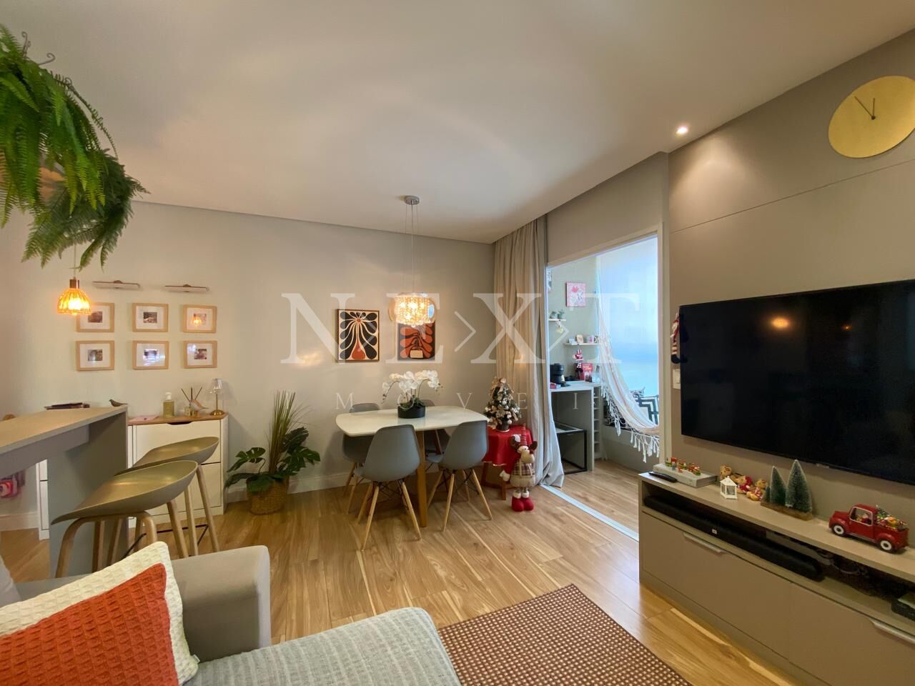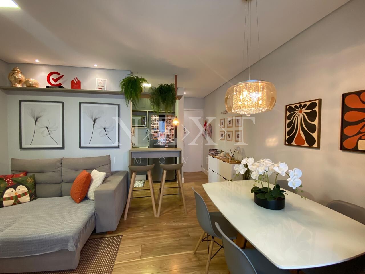 O imóvel possui sala de estar e jantar integradas que traz modernidade para o ambiente, com uma cozinha integrada com movelaria completa, além da sacada que proporciona um charme ao apartamento. Esse imóvel é perfeito para o dia a dia.