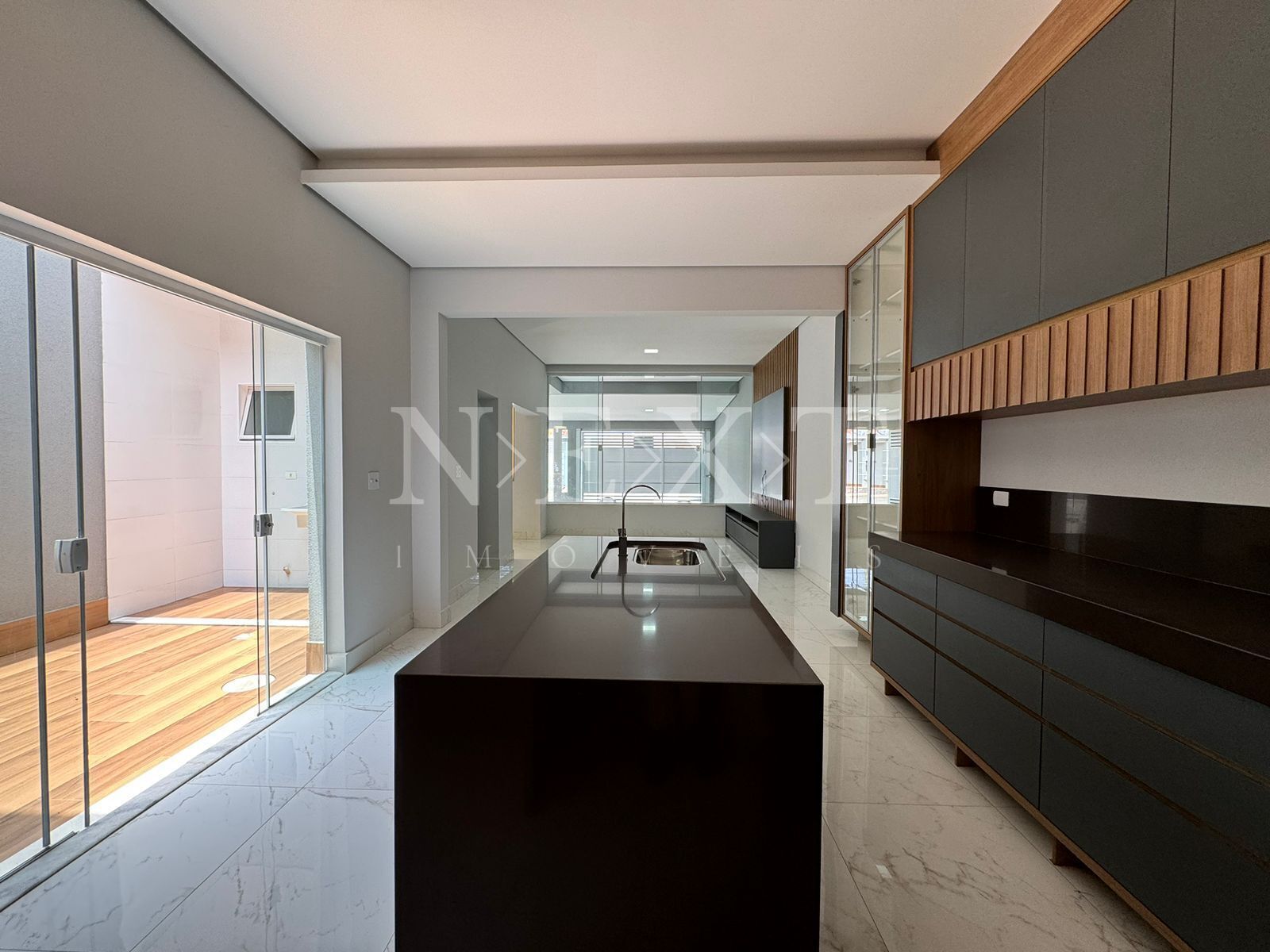 Planta moderna, Hall de entrada com painel ripado e espelho, sala de TV com painel planejado e pé direito alto, sala de jantar com pé direito alto, cozinha gourmet com ilha e moveis planejados , 03 dormitórios sendo 01 suite com closet, 02 banheiros com planejados e espelho,02 jardim de inverno e 01 lavabo, área gourmet.