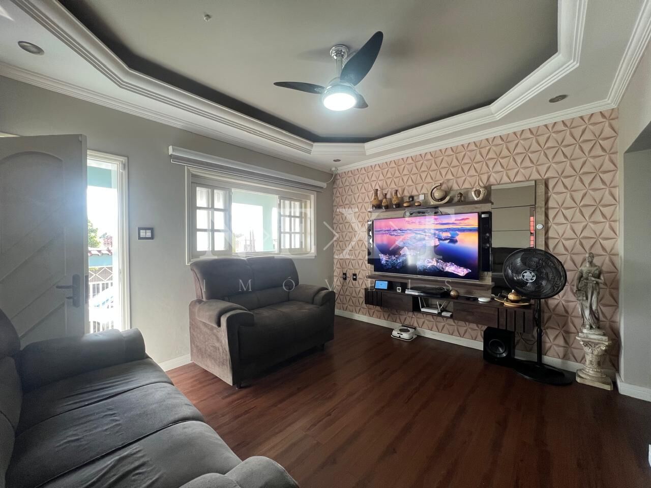 A residência possui 03 quartos, sendo 01 suíte, 03 banheiros e 02 vagas de garagem.