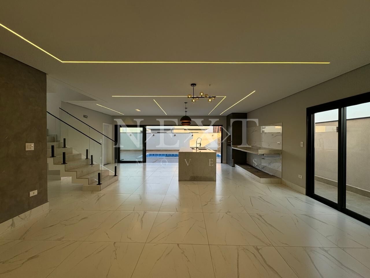 Ao entrar no imóvel você será impactado com uma bela sala de estar e jantar integrada, ao lado uma sala de TV um ambiente moderno e sofisticado, com uma cozinha gourmet integrada a área social e um lavabo, esse imóvel é perfeito para o dia a dia. A área intima conta com 03 suítes, sendo 01 suíte master com closet, todas com persianas automatizadas. A área de lazer precisa ser destacada, com um excelente espaço para receber convidados e uma piscina com cascata.